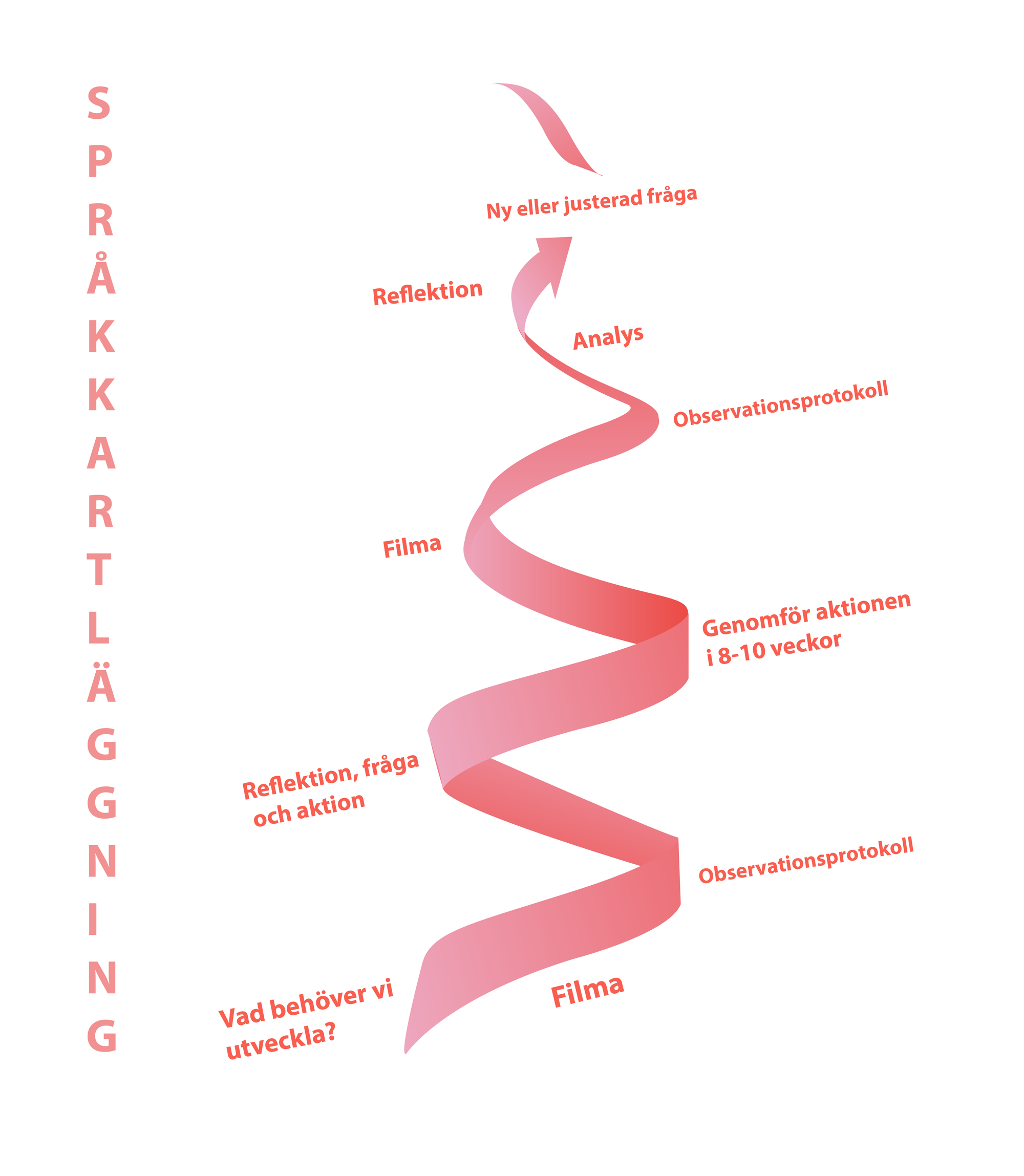 Modellen är baserad på aktionsforskning i syfte att stödja en systematik i utvecklingsarbetet. Första steget är att identifiera en pedagogisk situation där språkstödet kan förbättras. Genom att filma och observera dessa situationer med hjälp av observationsverktyget, skapas underlag för kollegiala samtal och professionell medvetenhet om språkstödets kvalitet och behov av utveckling. Personalen beslutar därefter vilka förändringar som behöver göras i en kommande aktion i syfte att skapa mer språkstimulerande situationer, som sedan åter observeras och reflekteras över kollegialt. Observationsverktyget ger stöd i att skapa väl avgränsade aktioner som gör det möjligt att följa upp resultatet.